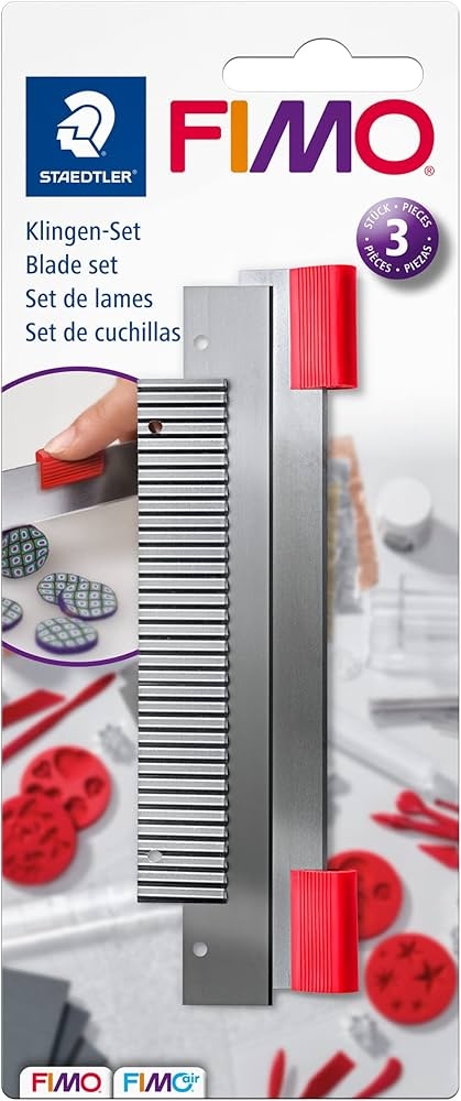 Elevate your clay game with the Staedtler FIMO Blade Set. Designed specifically for polymer clay enthusiasts, this 3-piece accessory kit gives you the versatility needed for everything from basic slicing to intricate decorative effects.