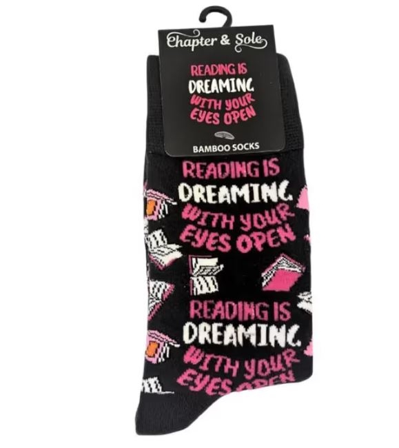 These bamboo socks are soft, breathable, and bookishly bold—featuring a clever reading-related phrase that wraps your feet in comfort and literary charm, one pun at a time.