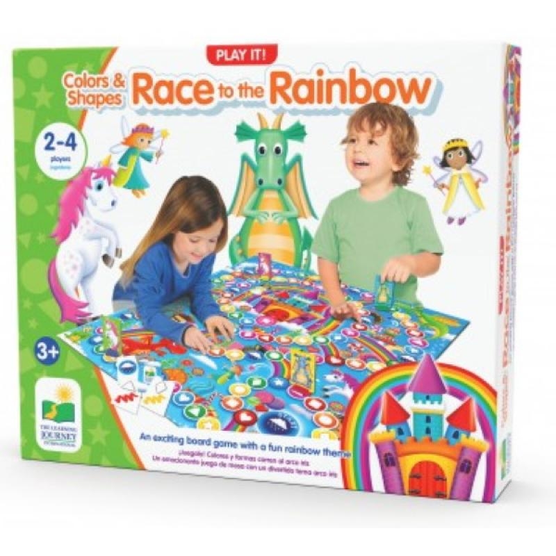 The Learning Journey's Race to the Rainbow is a challenging and whimsical game with a colourful theme that helps teach colour and shape recognition!