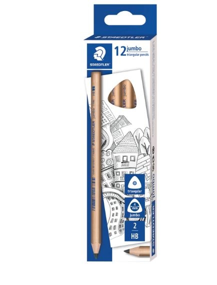 STAEDTLER® Natural 119 Triangular Jumbo HB Pencil is specially designed for small hands, ideal for first writing and drawing exercises. HB Lead degree