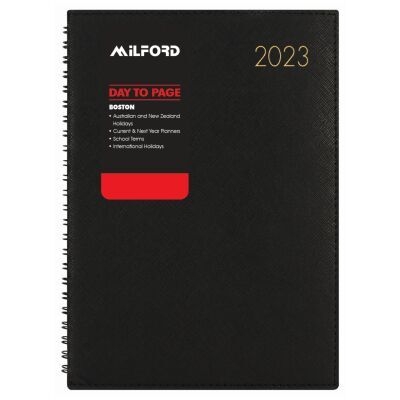 DIARIES 2023 Milford Milford Boston A5 1 Day Wiro Black