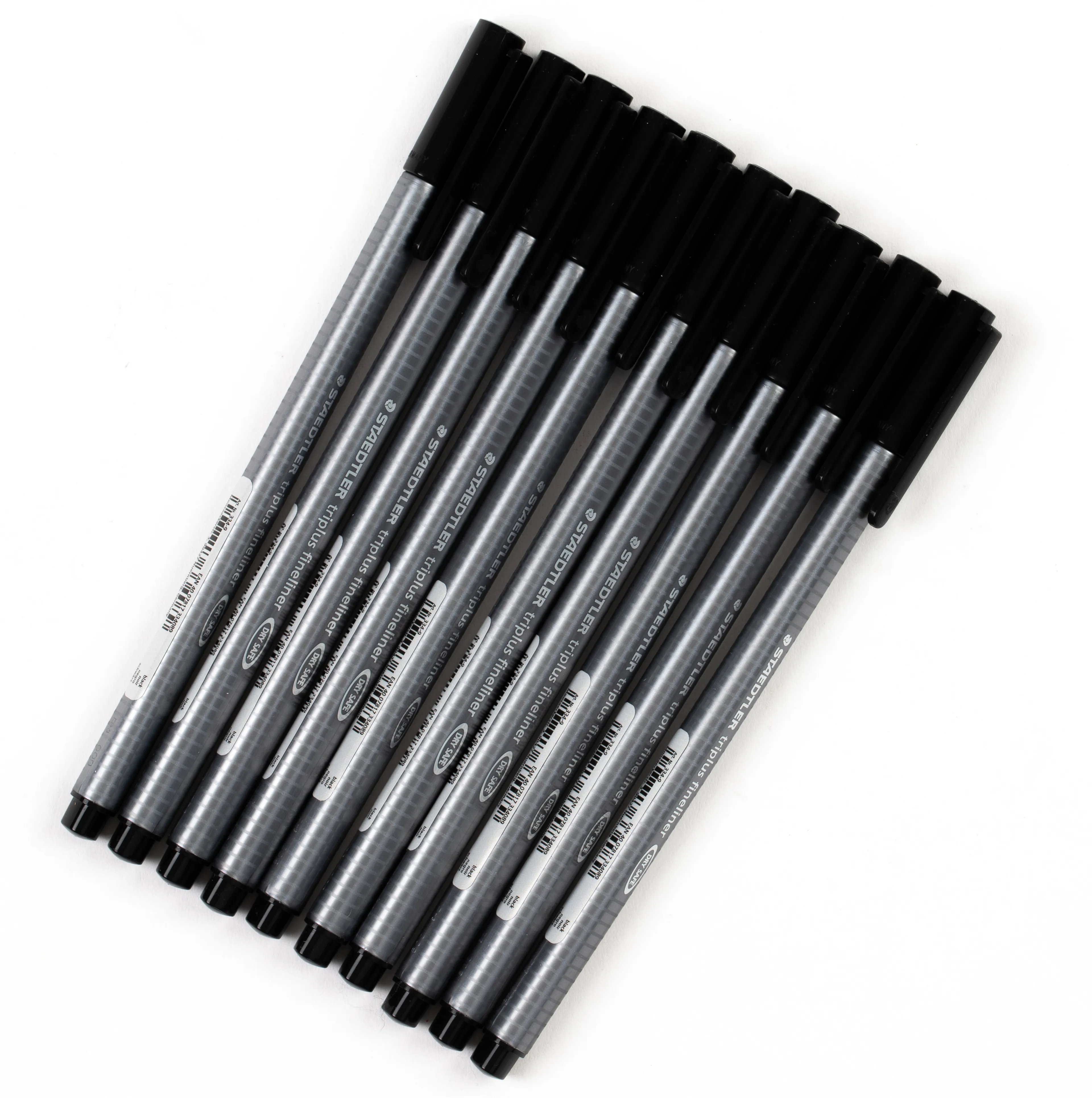 The Staedtler Triplus Fineliner Black Box of 10 is the essential professional choice for high-volume writing, sketching, and technical detailing. Featuring a superfine 0.3 mm metal-clad tip, these fineliners deliver a crisp, consistent black line that is the industry standard for legibility and precision. This bulk pack ensures a steady supply of Staedtler’s most popular color, making it a staple for architects, students, and office professionals who demand reliability in every stroke.