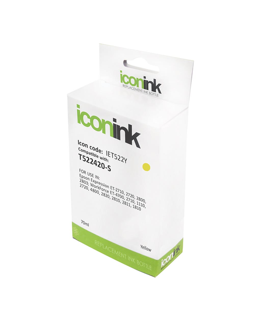 Icon Compatible Ink Bottles are designed to give outstanding performance with your inkjet printer, from the first page to the last. They offer excellent quality and print professional-looking documents and photos at an economical value per page. Quick and simple to replace, they are a staple for any office. Yellow 70ml bottle. Prints up to 7,500 pages. Compatible with EPSON EcoTank ET-1110, ET-2710, ET-2720 and ET-4700 inkjet printers.