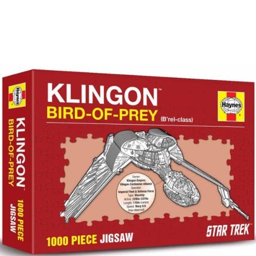 The Klingon Bird-of-Prey is one of the most common Klingon ships seen in the Star Trek franchise. Introduced in Star Trek III: The Search for Spock. The Bird of Prey is the first Klingon vessel depicted with a cloaking device, the wings are able to move, lowering to attack, maintaining just above horizontal in flight mode and raising high when the ship lands. This fascinating jigsaw puzzle combines illustrations of the the B rel-class from the Haynes Manual with detailed close-ups and facts making it perfect for Star Trek enthusiasts and puzzlers of all ages.