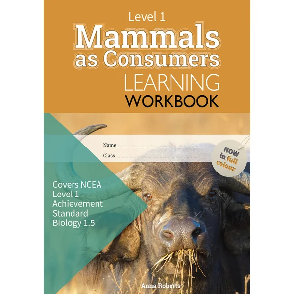 Investigate the biological systems that allow mammals to process energy and sustain life with this essential NCEA Level 1 Science guide. This workbook focuses on the relationship between diet, digestion, and the physical structures mammals use to obtain and utilize nutrients. Designed to make complex biological functions accessible, it provides students with a clear framework for understanding how different mammalian species have adapted to their specific roles as consumers in the ecosystem.
