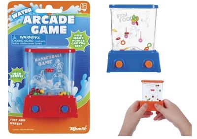 Fill the game container with water then push the buttons to move the balls or hoops around and score points.