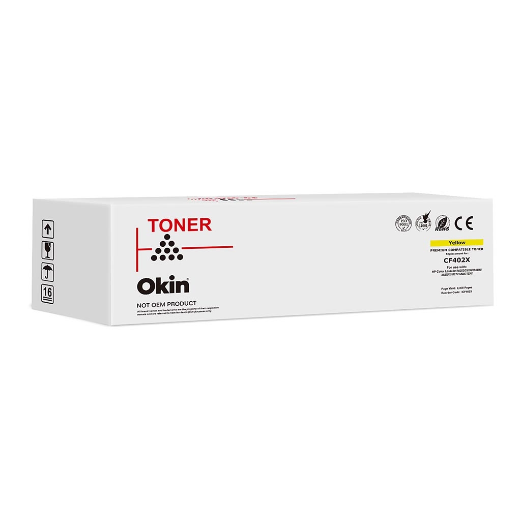 Okin Toner Cartridges are designed to perform consistently from the first page to the last. They offer outstanding print quality and give professional looking documents and photos at an economical value per page. They are quick and simple to replace and a staple for any office. Yellow. Page Yield 2300. Compatible with HP Colour LaserJet Pro M252dw, M274n, MFP M277dw, MFP M277n.