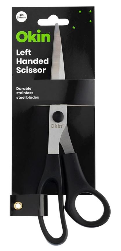 Designed for left handed use. Black plastic handles and stainless steel bladed. 8 inch, 210mm. Hangsell.