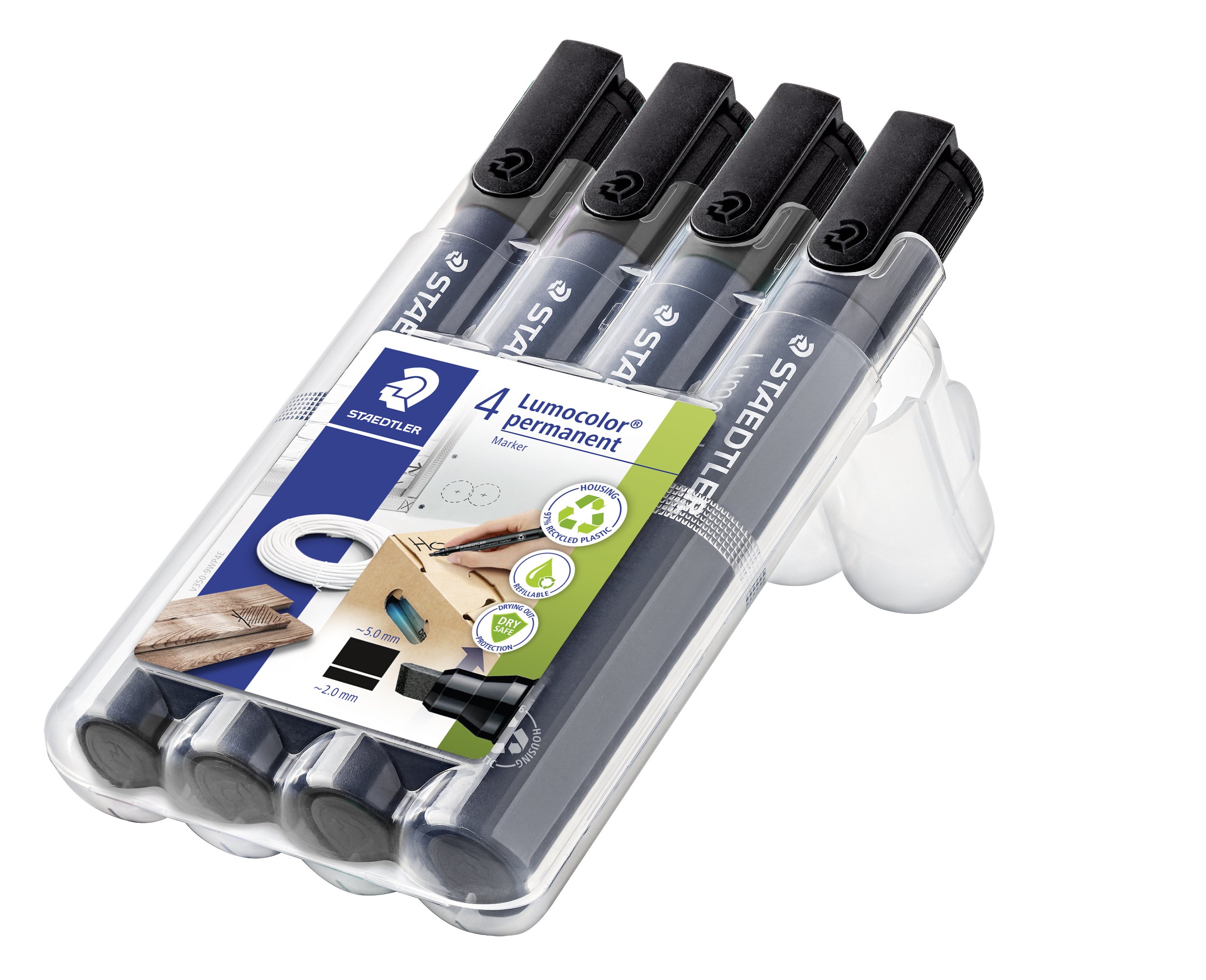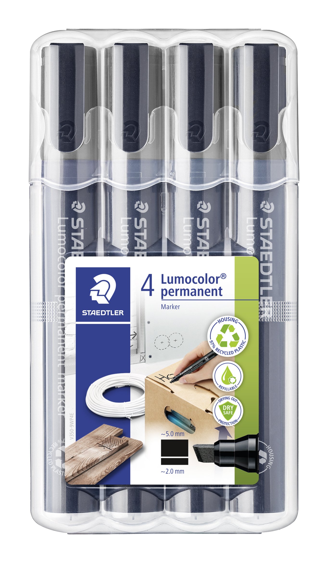 Permanent Marker Lumocolor Chisel Black 4 Pack