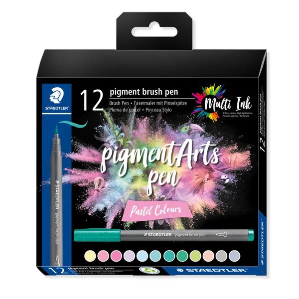 Pigment Arts Brush Pen Pastel Staedtler Assorted Pack of 12