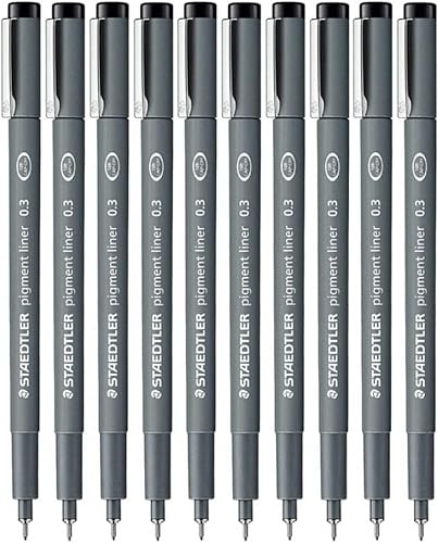 Define your work with the Staedtler Pigment Liner 0.3mm. This 10-pack of black fineliners is the "all-rounder" of the Pigment Liner family, offering a distinct, solid line that is perfect for bold sketching, clear note-taking, and professional drafting.