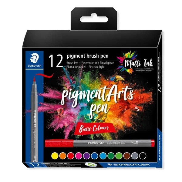 Staedtler Pigment Arts Brush Pen Basic Assorted Pack of 12