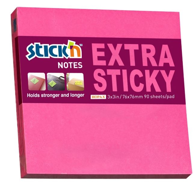 Stick'n Note Extra Sticky 76x76mm 90 Sheet Neon Magenta