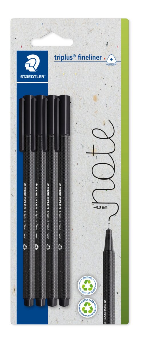 The classic STAEDTLER Triplus Fineliner in a dedicated 4-pack of essential black. Whether you’re signing documents, taking lecture notes, or working on technical drawings, these pens offer the perfect blend of ergonomic comfort and professional performance.