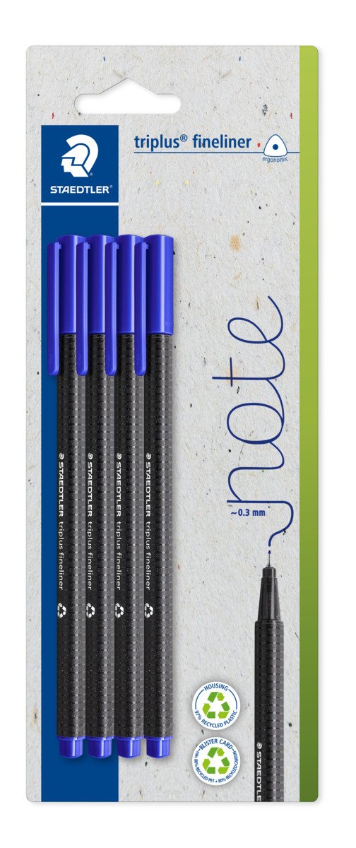 The classic STAEDTLER Triplus Fineliner in a dedicated 4-pack of essential blue. Whether you’re signing documents, taking lecture notes, or working on technical drawings, these pens offer the perfect blend of ergonomic comfort and professional performance.