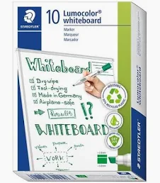 Bring a fresh perspective to your workspace with the Staedtler Lumocolor Bullet Tip Whiteboard Markers in Green. This box of 10 professional-grade markers is the perfect addition to any collaborative environment, offering a distinct color for categorizing information and making creative diagrams pop.